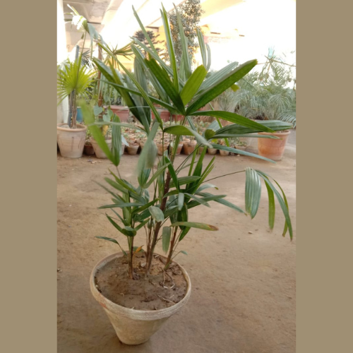 - It is a small palm that grows in thick clumps of slender upright stems. it has large, hand-shape leaves with long, glossy, dark green, finger-like leaflets.